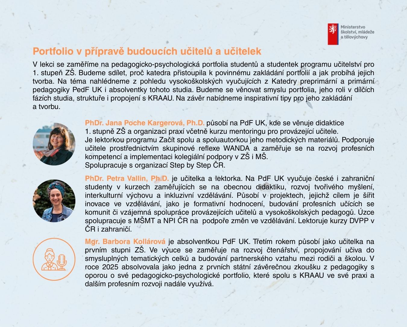 Mgr. Miluše Rolincová (Miluse.Rolincova@msmt.gov.cz) ministerský rada v Oddělení podpory digitálního vzdělávání, Odbor předškolního a základního vzdělávání