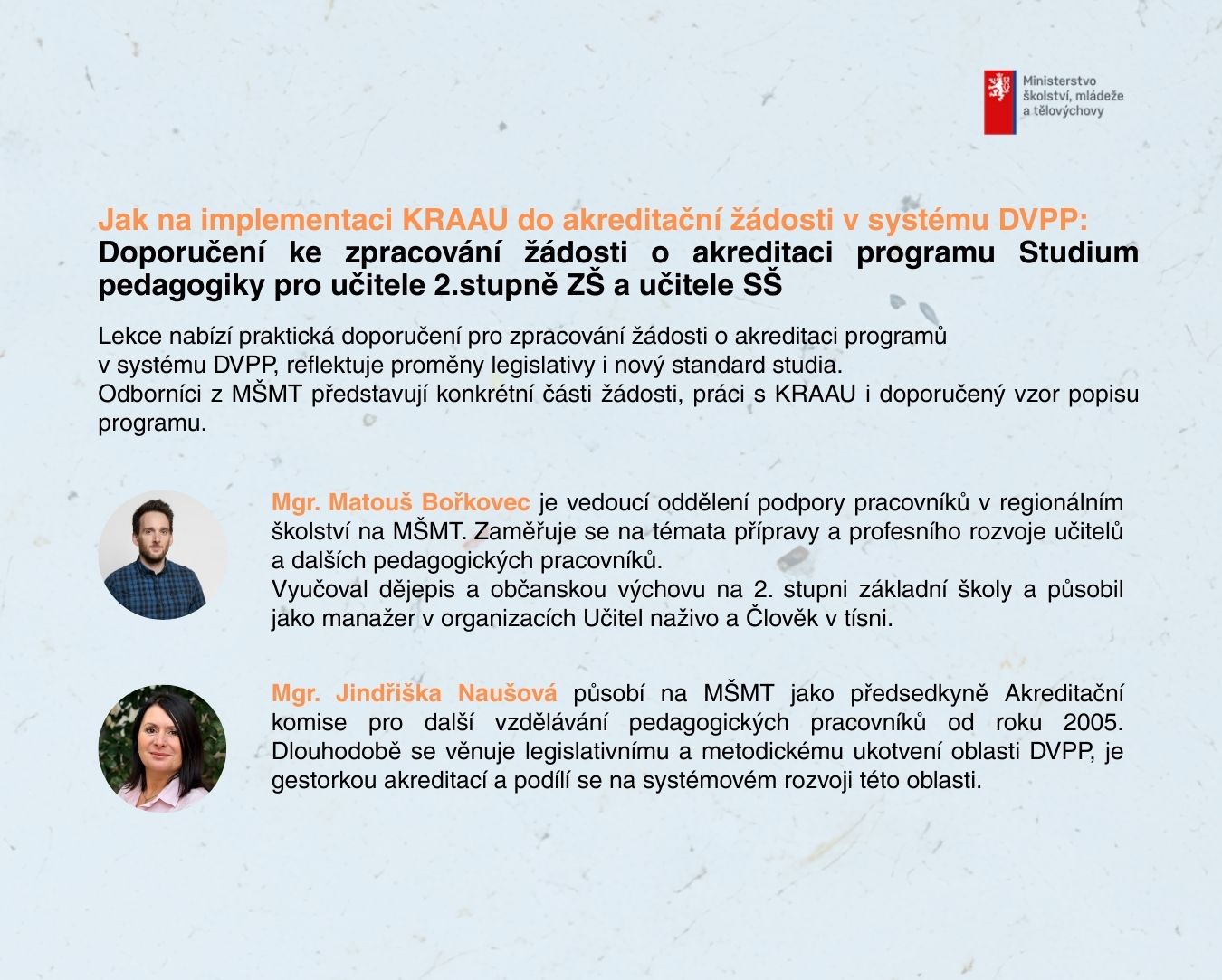 Kateřina Lichtenberková a Tomáš Hula, NPI – metodická podpora