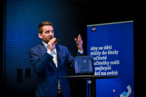 S dalším příspěvkem vystoupil Matouš Bořkovec, vedoucí oddělení podpory pedagogických pracovníků v regionálním školství MŠMT, který se zaměřil na kariérní systém učitelů: